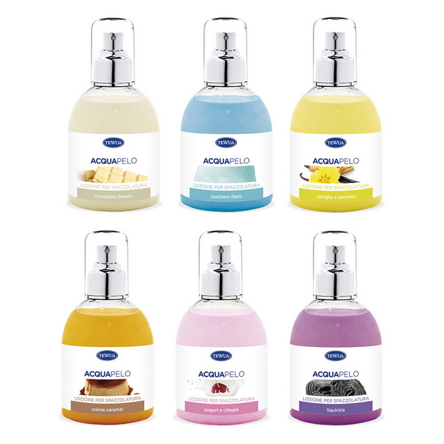 Scheda Prodotto Lozione Spazzolatura Aquapelo, facilita lo scorrimento della spazzola senza strappare ed aiuta la rimozione del pelo superfluo con delicatezza. 6 diverse fragranze dolci e delicate, completano la linea Gourmand. Raprresenta la soluzione ideale per una pulizia facile ed efficace senza acqua, perfetto per qualsiasi stagione ed in particolare nel periodo invernale.