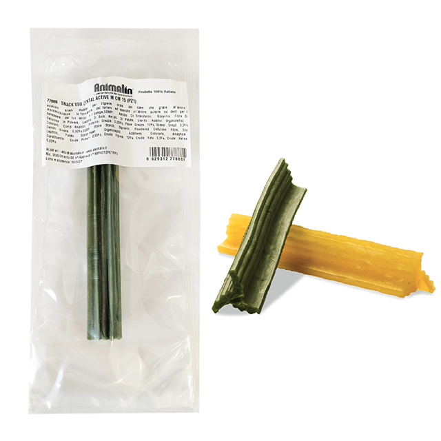Animalin snack e'''' studiato per l''''igiene orale del cane che grazie all''''azione meccanica, riduce la formazione del tartaro ed esercita un''''azione pulente sui denti per il benessere del tuo amico a quattro zampe.COMPOSIZIONE: Amido Di Granoturco, Glicerina, Fibra Di Cellulosa In Polvere, Lecitina Di Soia, Amido Di Patate, Lievito. Additivi Organolettici: Coloranti. Componenti Analitici: Proteina Grezza 0,85%, Fibre Grezze 12%, Grassi Grezzi 3,3%, Ceneri Grezze 0,92%.COMPOSITION: Maize Starch, Glycerin, Powdered Cellulose Fibre, Soy Lecithin, Potato Starch,Yeast. Organoleptic Additives: Colorants. Analytical Constituents: Crude Protein 0,85%, Crude Fibres 12%, Crude Fats 3,3%, Crude Ashes 0,92%.