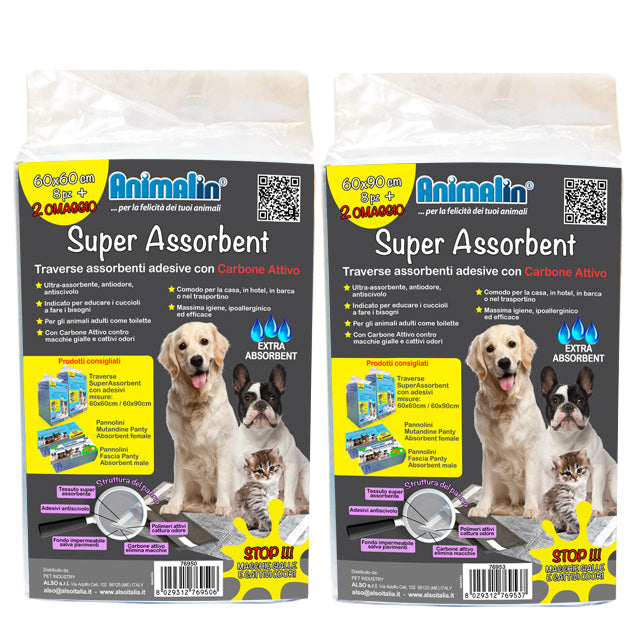 Traverse assorbenti al carbone attivo, ideali per cuccioli in fase di educazione e per animali adulti come toilette. Ultra assorbenti, anti-odore, anti-macchia e ipoallergeniche, garantiscono massima igiene e protezione dei pavimenti in casa, in viaggio, in hotel o in barca.