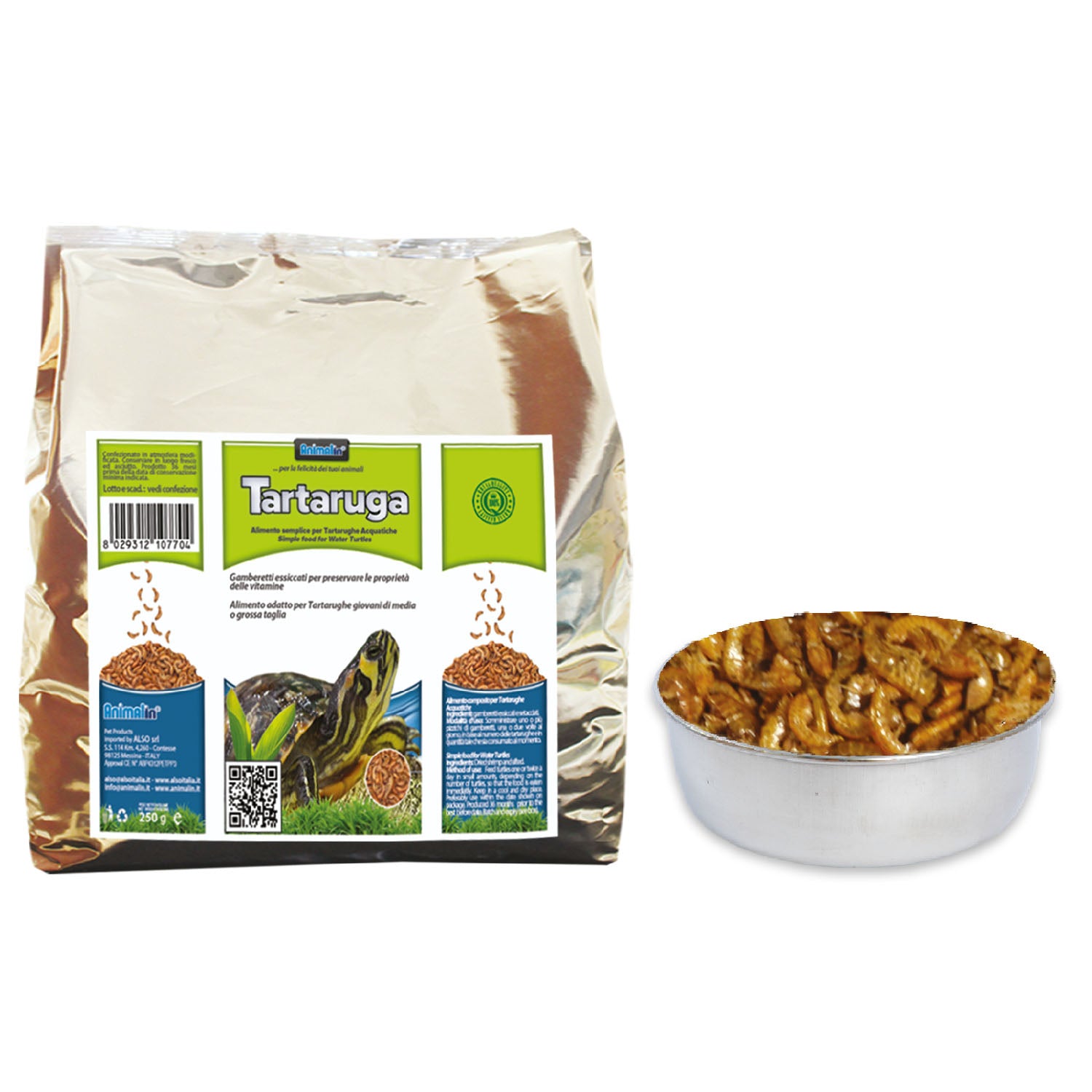 Alimento semplice per tartarughe acquatiche. Gamberetti essiccati.