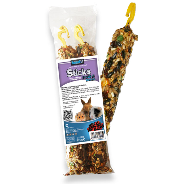 IT Alimento complementare per Roditori. Bastoncini con frutti di bosco. Composizione: grano, farina, mais, avena in fiocchi senza buccia, miglio, frutti di bosco misti 4,5 %, semi di girasole neri, saggina, semi di cardo, semi di girasole a strisce, miglio rosso, semi di lino.EN Complementary food for Rodents. Sticks with berries.Composition: wheat, flour, corn, flaked oat-free oats, millet, mixed berries 4.5%, black sunflower seeds, sorghum, thistle seeds, striped sunflower seeds, red millet, linseed.ES Comida complementaria para roedores. Palitos con bayas.Composición: trigo, harina, maíz, copos de avena sin copos, mijo, bayas mixtas 4,5%, semillas de girasol negras, sorgo, semillas de cardo, semillas de girasol rayado, mijo rojo, linaza.FR Nourriture complémentaire pour les rongeurs. Bâtons avec des baies.Composition: blé, farine, maïs, flocons d'avoine floconnés, millet, baies mélangées 4,5%, graines de tournesol noires, sorgho, graines de chardon, graines de tournesol rayées, millet rouge, graines de lin.