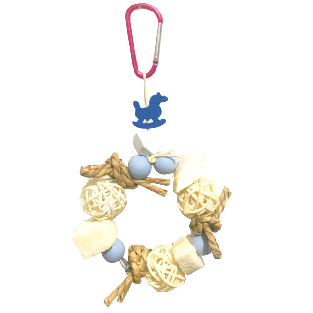 Descrizione: Gioco a forma ovale con ossi di seppia, ideale per il benessere dei piccoli amici. Aiuta a mantenere in salute becco, unghie e ossa, offrendo stimolazione e divertimento all’interno della gabbia o voliera.