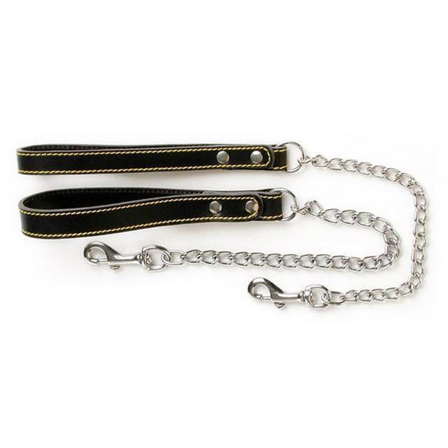 Guinzaglio con Catena e Manico in Similpelle Nero