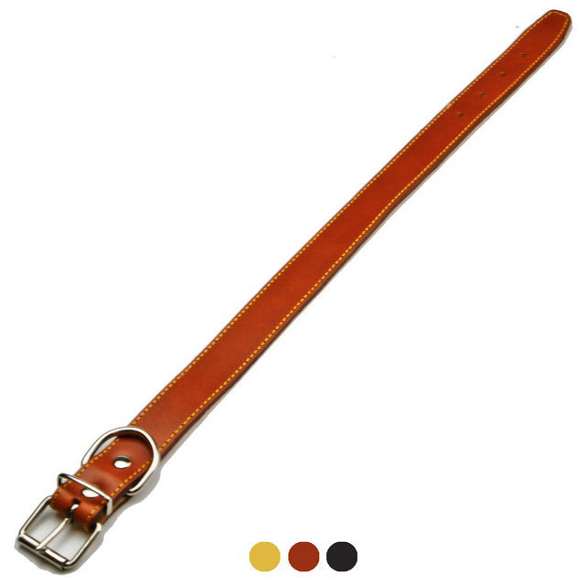 Collare in cuoio foderato cucito. Colori assortiti: naturale, marrone, nero. Prodotto italiano.