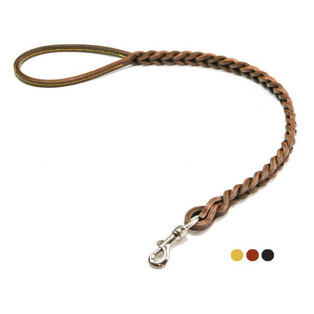 Guinzaglio in cuoio intrecciato. Colori assortiti: naturale, marrone, nero.