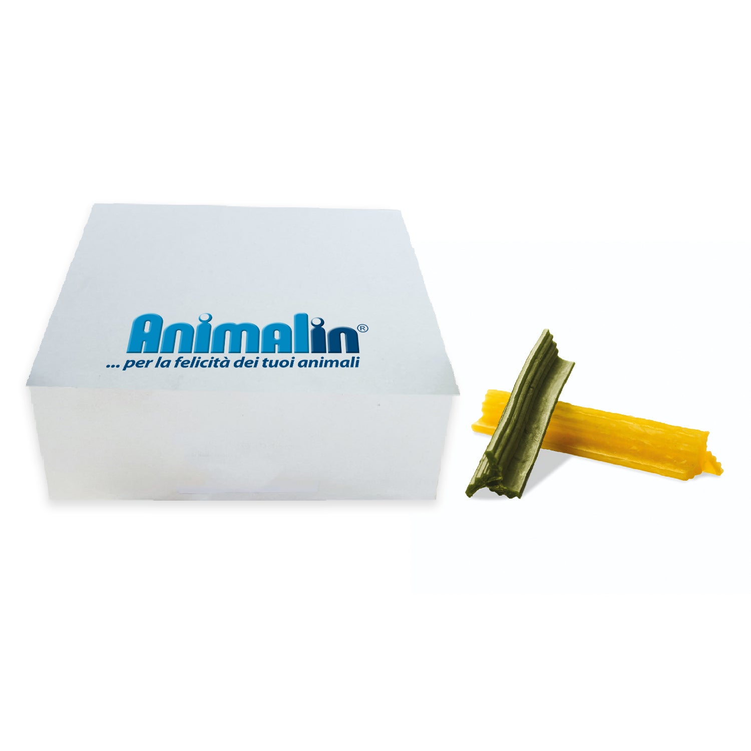 Animalin snack e' studiato per l'igiene orale del cane che grazie all'azione meccanica, riduce la formazione del tartaro ed esercita un'azione pulente sui denti per il benessere del tuo amico a quattro zampe.COMPOSIZIONE: Amido Di Granoturco, Glicerina, Fibra Di Cellulosa In Polvere, Lecitina Di Soia, Amido Di Patate, Lievito. Additivi Organolettici: Coloranti. Componenti Analitici: Proteina Grezza 0,85%, Fibre Grezze 12%, Grassi Grezzi 3,3%, Ceneri Grezze 0,92%.COMPOSITION: Maize Starch, Glycerin, Powdered Cellulose Fibre, Soy Lecithin, Potato Starch,Yeast. Organoleptic Additives: Colorants. Analytical Constituents: Crude Protein 0,85%, Crude Fibres 12%, Crude Fats 3,3%, Crude Ashes 0,92%.