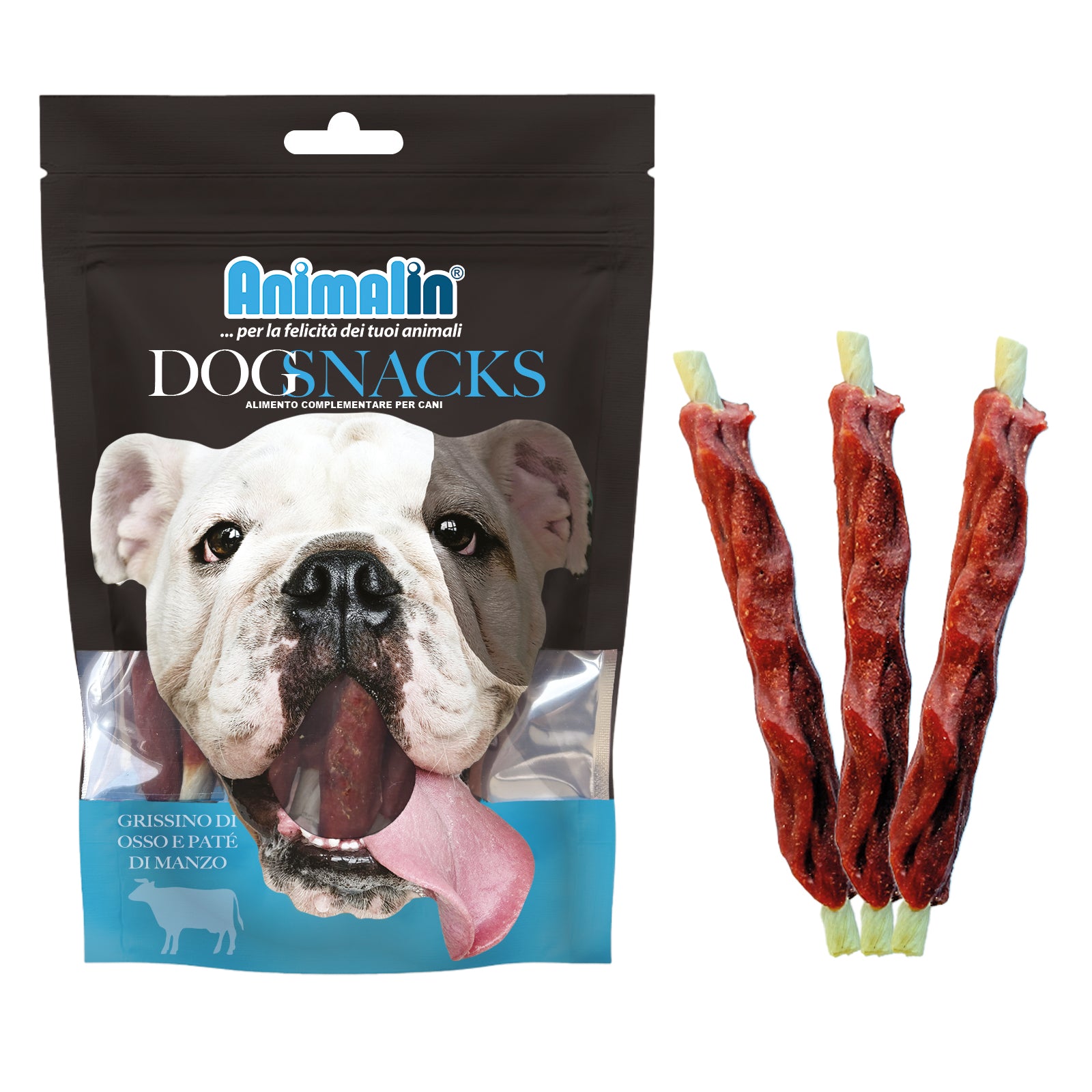 I Grissini di Osso con Paté di Manzo sono snack monoproteici pensati per cani che amano masticare. Contengono manzo come unica fonte proteica e cuoio grezzo per favorire la masticazione, mantenendo denti e gengive in salute. Ideale come complemento all’alimentazione quotidiana o come premio gustoso.